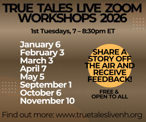 True Tales Live workshops offer you the chance to share a story, get feedback off-air and to practice telling on Zoom. Whether you are a seasoned teller or completely new to the art, we welcome you!